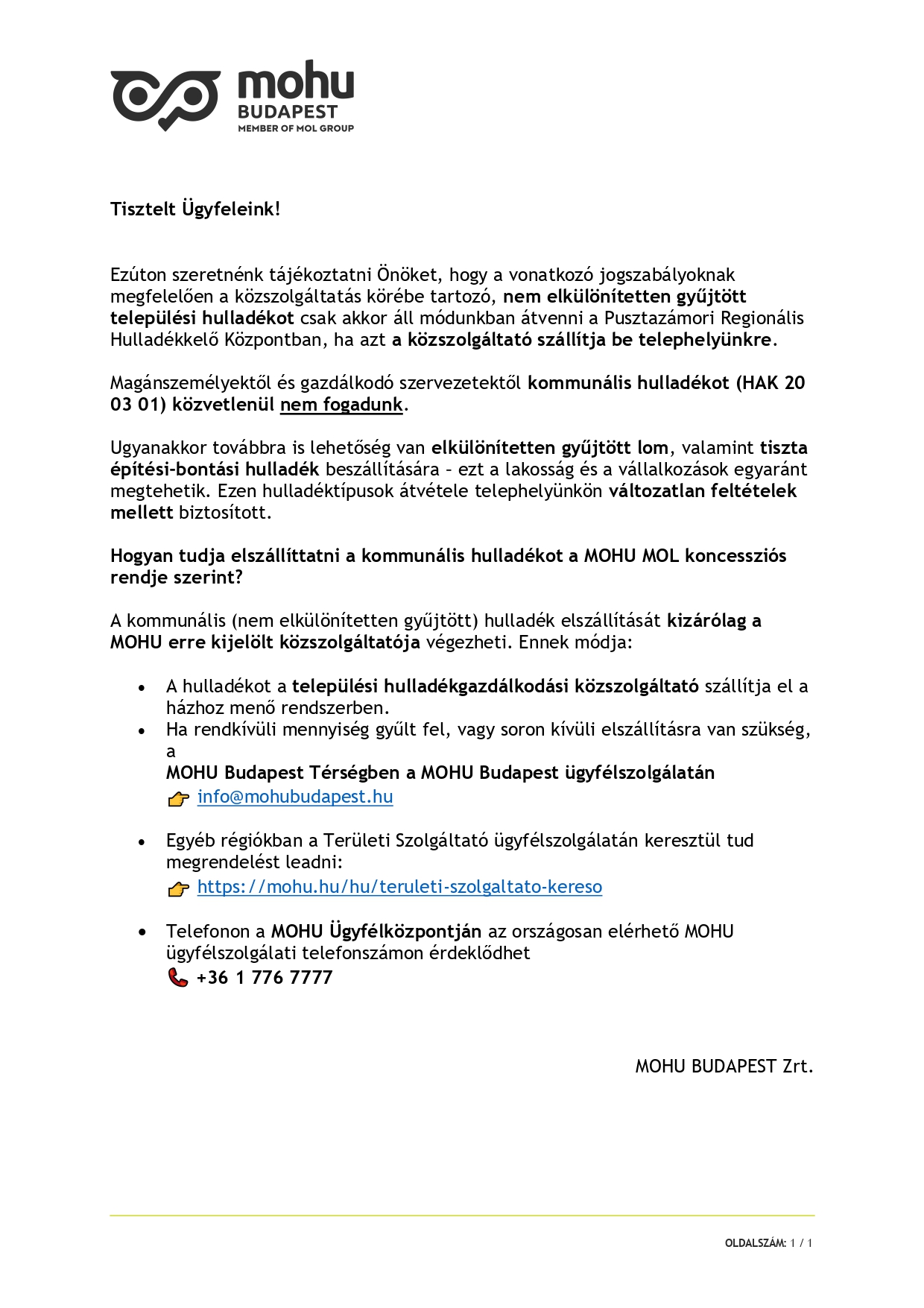 | FONTOS INFORMÁCIÓK A PUSZTAZÁMORI REGIONÁLIS HULLADÉKKEZELŐ KÖZPONTRÓL