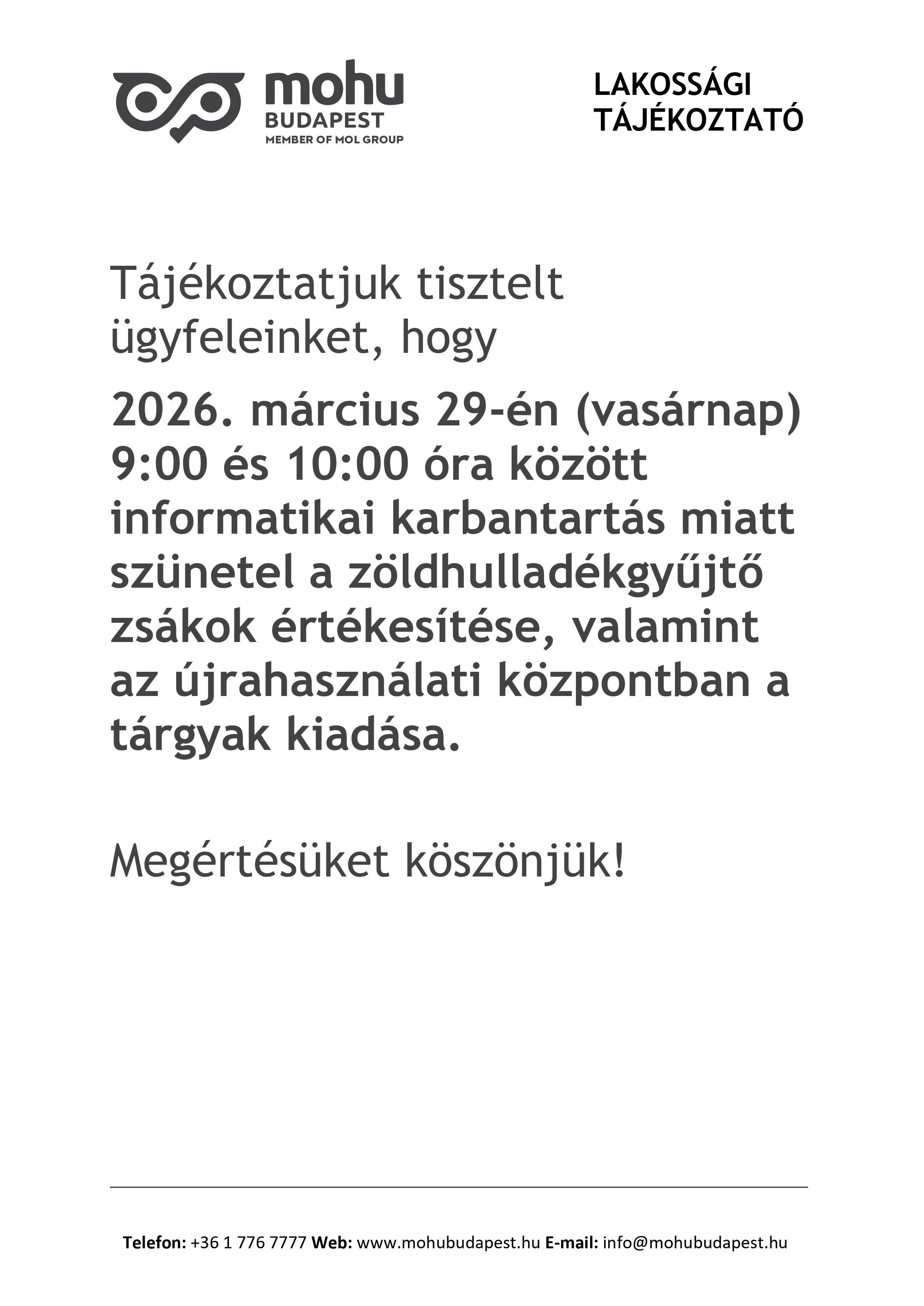 Bejelentkezés az oktatas@mohu.hu e-mail címen lehetséges. |