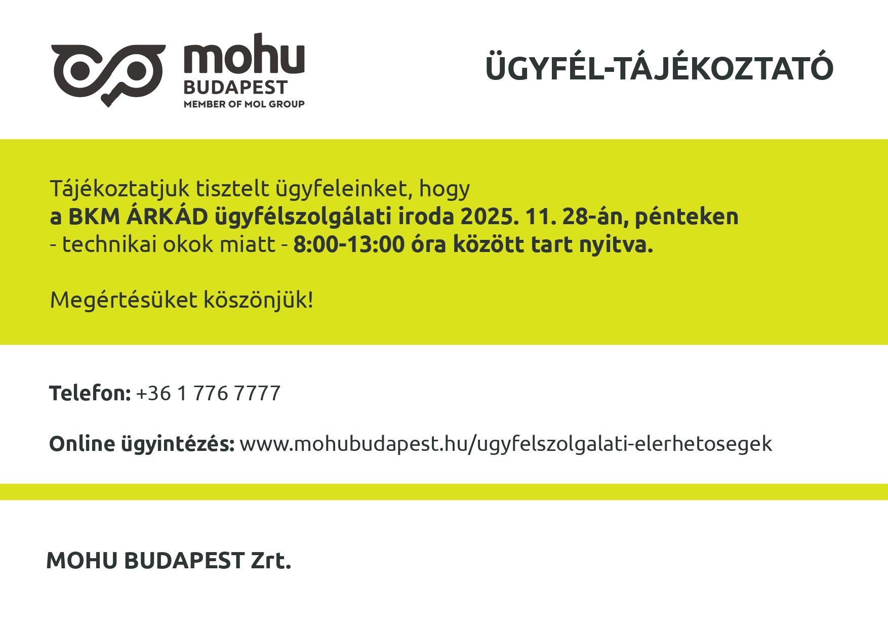 A MOHU BUDAPEST által ellátott hulladékgazdálkodási közszolgáltatási résztevékenységhez kapcsolódó ügyfélszolgálati tevékenységét – a MOHU BUDAPEST megbízása és meghatalmazása alapján – a BKM BUDAPESTI KÖZMŰVEK Nonprofit Zártkörűen Működő Részvénytársaság látja el.